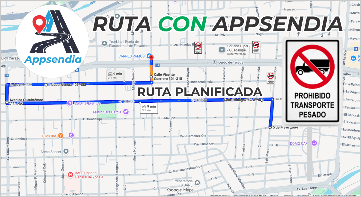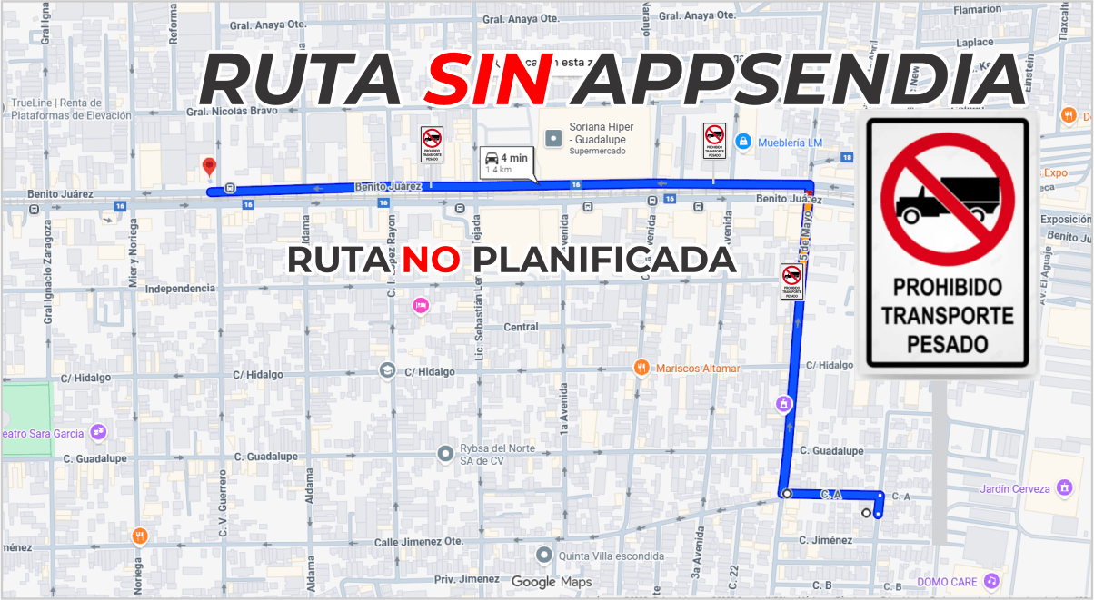 Le mostraremos lo que usted ya sabe, Un vehículo de carga transitando por una ruta trazada por cualquier sistema de GPS. Se expone a muchos riesgos y multas si llega a existir en la ruta Restricción de transporte pesado, o una zona donde simplemente no puede pasar, un puente, una incorporación, una curva, etcétera. Pero esto, usted ya lo sabe.